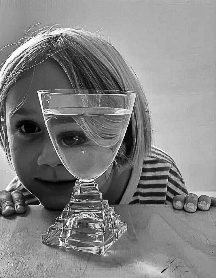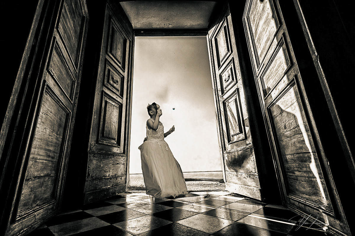 Le reflet, parfaitement capturé, enrichit la scène d’une dimension onirique, tandis que le décor ancien renforce l’atmosphère nostalgique et intemporelle.