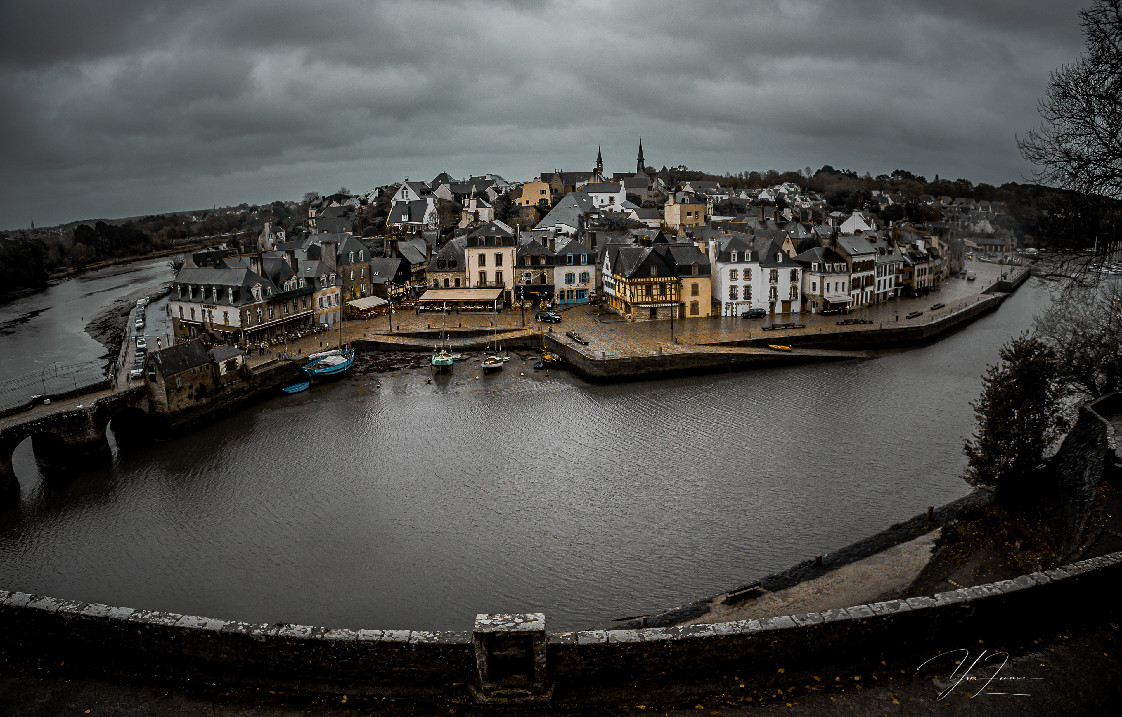 Cette œuvre dévoile la beauté du port de Saint-Goustan, à Auray, observé en hauteur, lové dans les méandres tranquilles de la rivière d’Auray. Le ciel dramatique, les façades anciennes et les tonalités automnales apportent à la scène une intensité presque cinématographique.