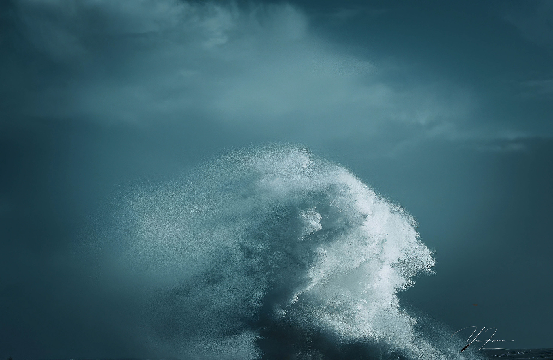 Dans cette scène d’une intensité brute, Yves Lamourec capture la rencontre entre la mer déchaînée et les ciels tourmentés de la côte quiberonnaise.